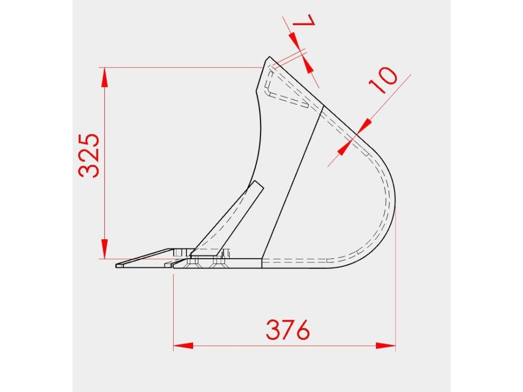 ,Podkop 400 mm, HSWS 01, 35 l, 35 kg,3 zuby, materiál S355, 5mm základ, boční břity 8 mm, úchyt 10 mm,Břit 150/16 HB 500. Zub vidlicový E11.4